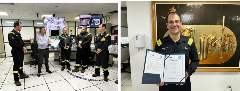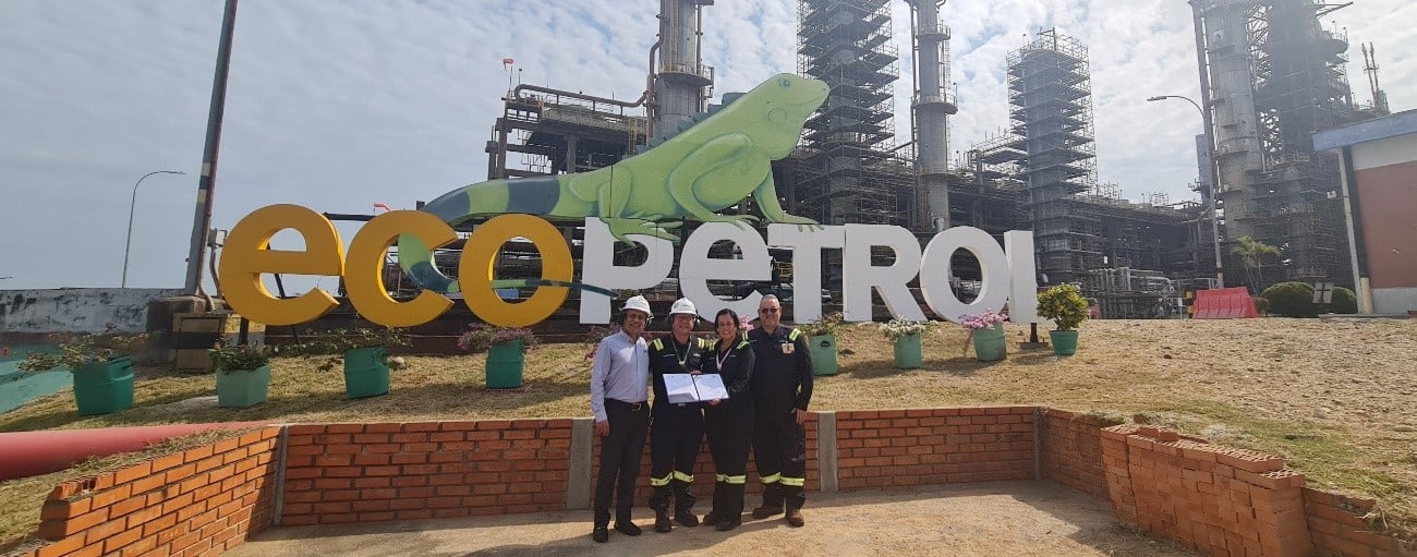 El certificado fue entregado por Luis Alejandro Franco, Gerente de Operaciones de Kiwa Colombia y en representación de Ecopetrol, recibieron el reconocimiento, Henrry de Jesús Castaño Grajales, Gerente General Encargado de la Refinería y Domingo Antonio Escalante Salazar, Asesor de la Vicepresidencia de Refinación y Petroquímica.