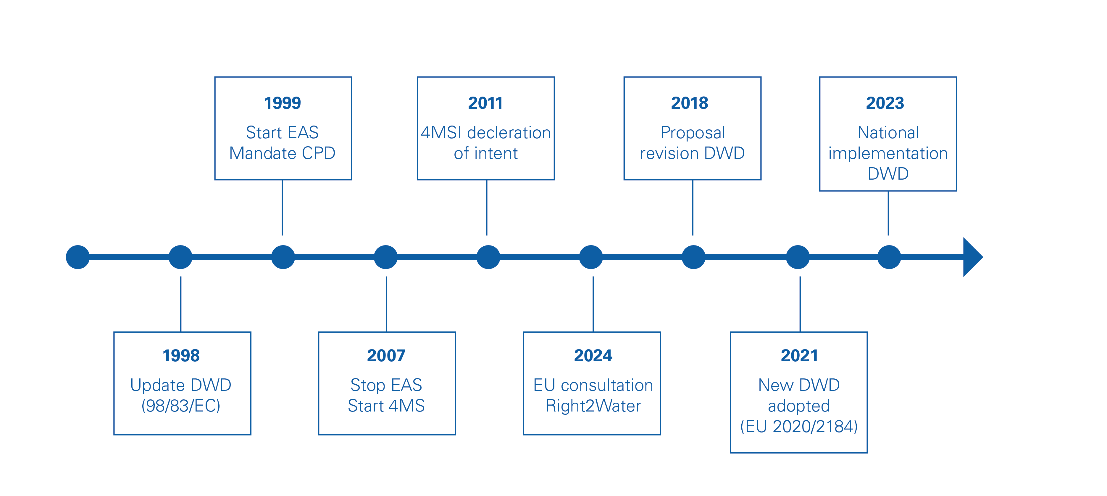 The new Drinking Water Directive did not come out of nowhere. It is the recast of the old 1998 DWD, taking the developments of the last decades into account. This includes the EAS and 4MSI results and the Right2Water initiative.